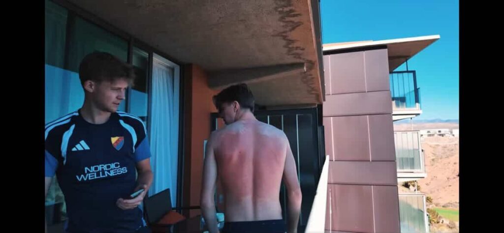– Jag tror inte killen gjort sig vän med solen förr heller, jag vet inte om han rört sig utanför sitt rum… Den där ryggen såg inte bra ut och jag vet inte om det röda gått bort ännu, så röd som den var, säger Åslund innan han brister ut i skratt.