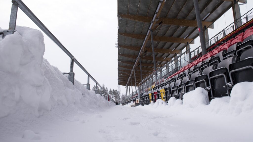 Ingen snökastning på läktaren.