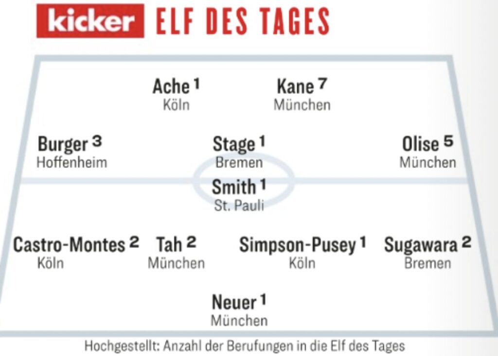 Vad har Bayern München-duon Harry Kane och Manuel Neuer gemensamt med svenska Eric Smith? Jo, alla är uttagna i den tyska tidningen Kickers omgångens lag i Bundesliga.