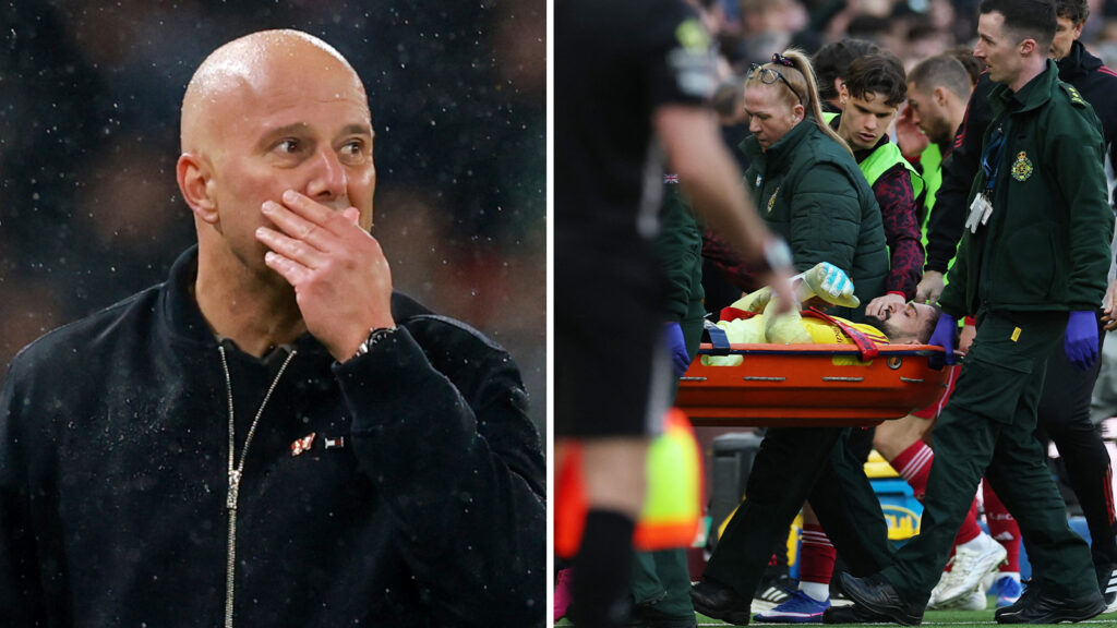 Efter att Virgil van Dijk avgjort derbyt på tilläggstid bekräftar tränaren Arne Slot att Mamardashvili har behövt läkarvård för ett ”stort sår”.