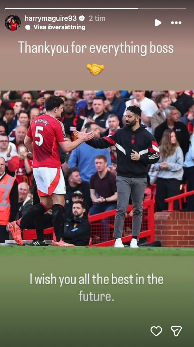 ”Tack, mister! Jag önskar dig och din tränarstab allt det bästa”, skriver United-kaptenen Bruno Fernandes i ett inlägg på Instagram.