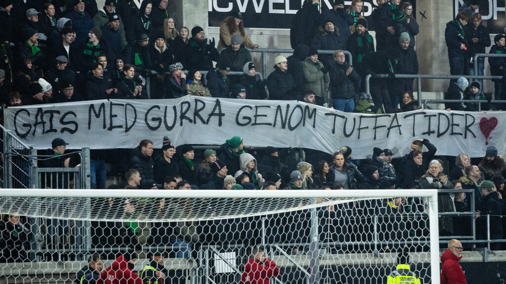 Under matchen visade Gais-supportrarna upp en banderoll med texten: ”Gais med Gurra genom tuffa tider”.