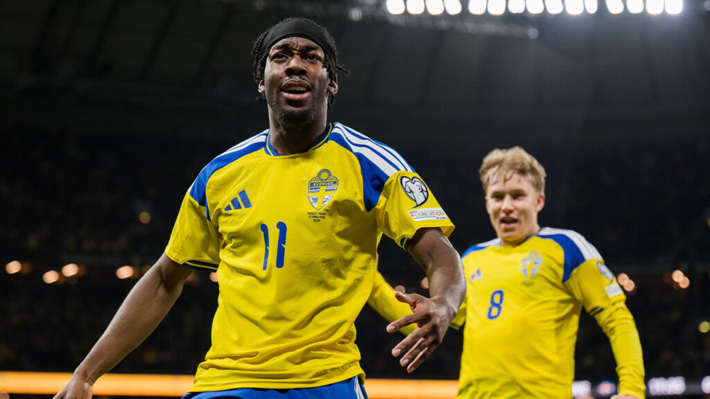 Newcastle-yttern tvekade inte en sekund utan drog till med sin vänsterfot – via ribban och in! En riktig drömträff från Elanga som innebar Blågul ledning i Solna.